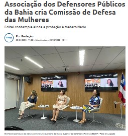 Texto completo em: https://atarde.com.br/bahia/associacao-dos-defensores-publicos-da-bahia-cria-comissao-de-defesa-das-mulheres-1312867