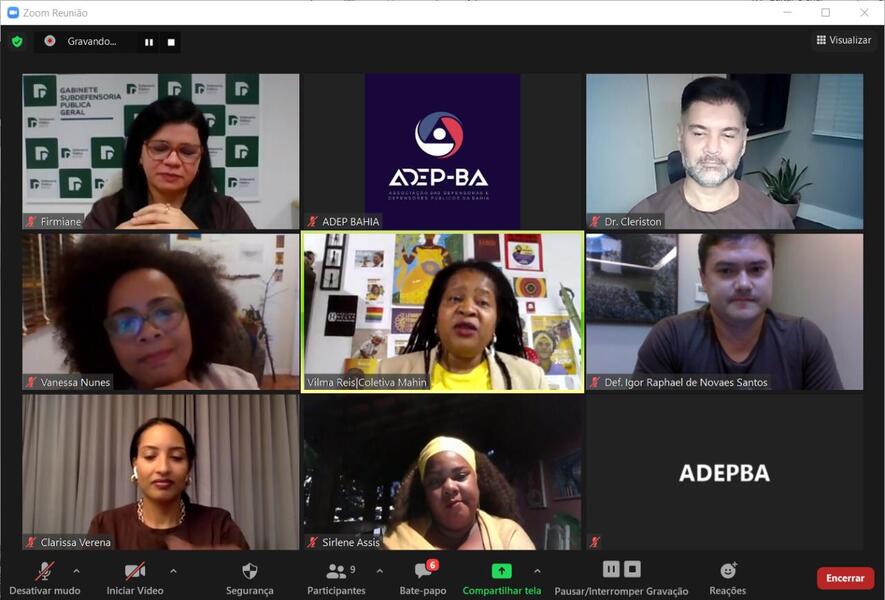 "O evento desta terça-feira foi mais uma articulação da Associação no sentido de divulgar a campanha e promover o diálogo da Defensoria com os diversos atores do movimento negro. Sirlene Assis e Vilma Reis são lideranças importantes nesse processo e vem apoiando a campanha que já é destaque com atores políticos importantes e, em especial, com líderes culturais que vêm divulgando a campanha em toda Bahia” destacou o Presidente da Adep-Ba, Igor Santos, quem conduziu o encontro virtual.